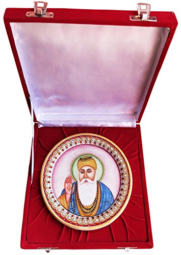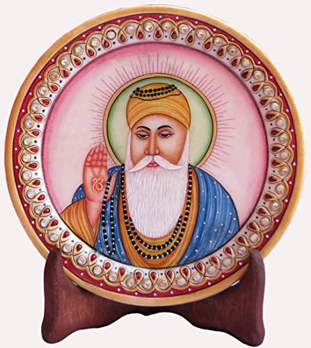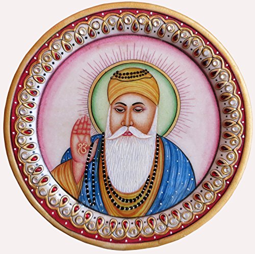 Gurunanak Dev Painting on Round Marble Plate, Art of India, Must for Sikh Religious People