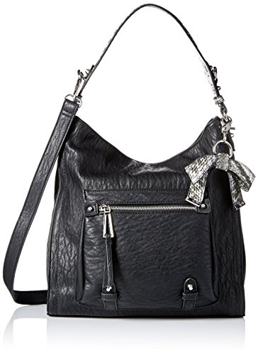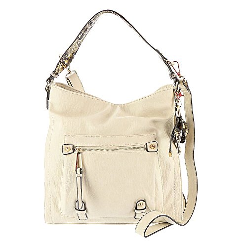 A PVC hobo with front functional pockets, removable adjustable cross body strap and bow charm