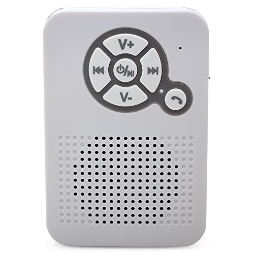 Aduro AquaSound WSP40 Waterproof Shower Bluetooth Portable Speaker with Stand and Suction Cup (White/Grey)