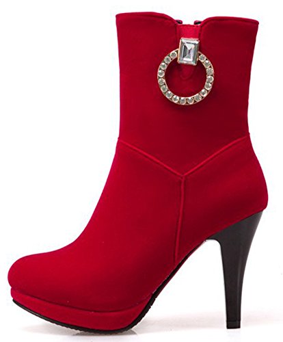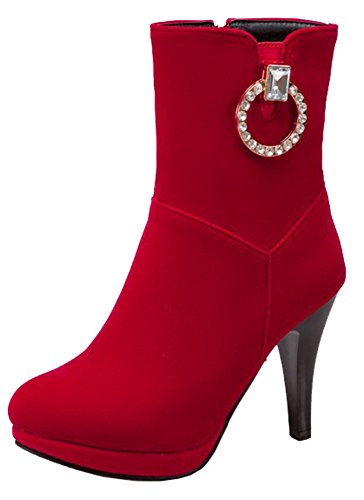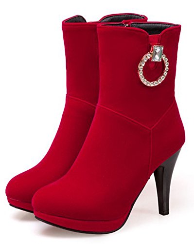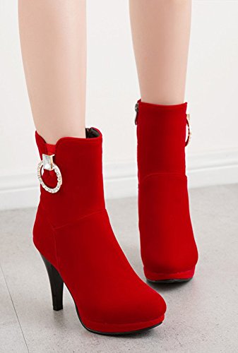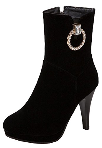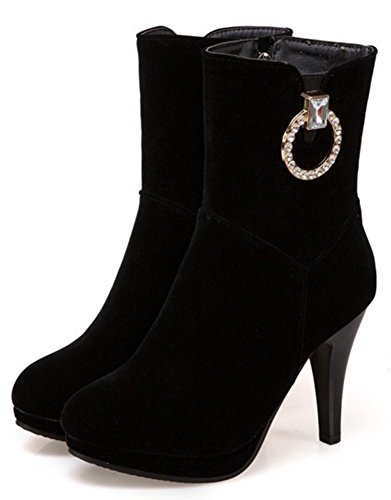 Binding : Apparel Product Description Winter is coming! Do you want a pair of boots both of fashion and warm? This pair of snow boots is a perfect choice. This lovely shoes features inside zip up closure and round toe. With their rhinestones in the upper, you will look more elegant and cute. The faux fur lined will warm you all winter. The sole is made of good rubber. You will feel comfy in their soft bottom. The heels measure 3.7 inches. You will feel comfortable in their chunky heels. So you will not feel tired even walking all day long. They are of high quality and durable. Just pick them to show your beauty. 0