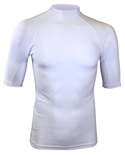 Rash Guard Compression Shirt For Men - USA Made Base Layer & Swim Shirt (White, Medium)