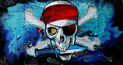 - Colorful Skull and Crossbones Terry Velour Beach/Bath Towel