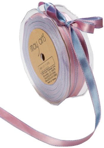 May Arts 3/8-Inch Wide Ribbon, Light Blue and Pink Satin