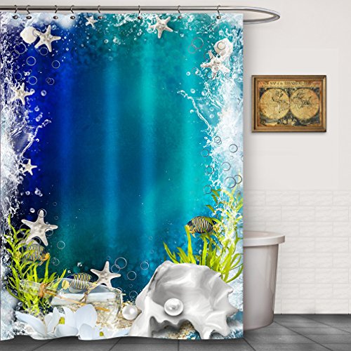 Ocean Submarine World Fabric Shower Curtain by FOOG Starfish Seashell Bubble Fish Cool Summber Bath Decor Home Art Mildew-Resistant Waterproof (70"Wx78"L)