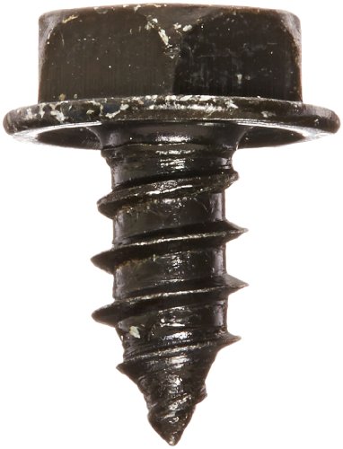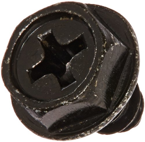 Steel Sheet Metal Screw, Black Zinc Plated Finish, Hex Washer Head, Phillips Drive, Type AB, #10-16 Thread Size, 3/8" Length (Pack of 100)