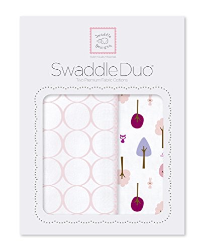 SwaddleDesigns SwaddleDuo, Set of 2 Swaddling Blankets, Cotton Muslin + Premium Cotton Flannel, Pastel Pink Cute and Calm Duo