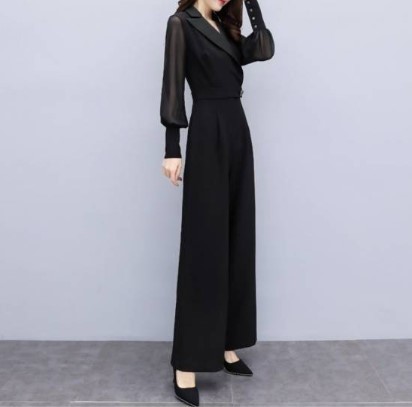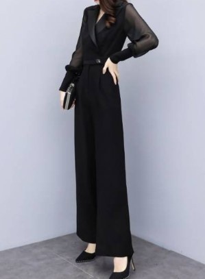 シルエットがきれいなオールインワンジャンプスーツ。