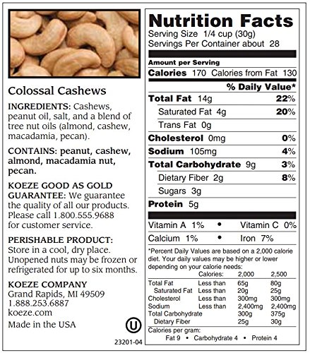 -. Title : Koeze's Colossal Cashews - 30 oz. Decanter