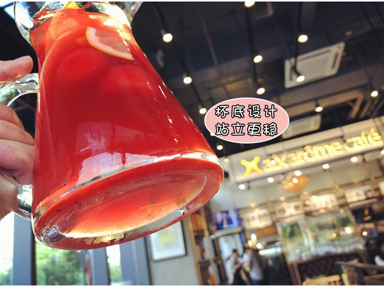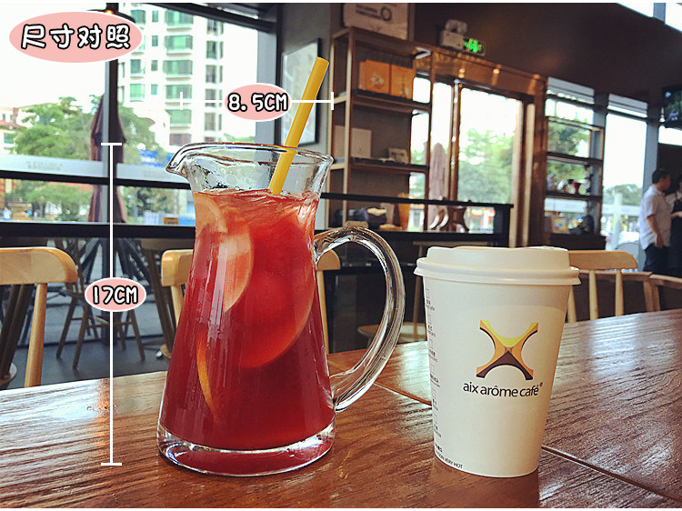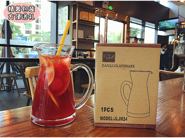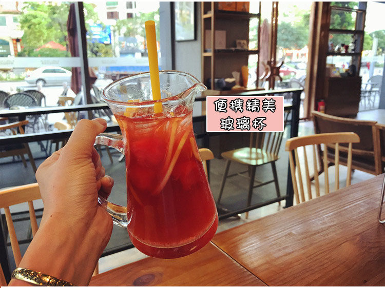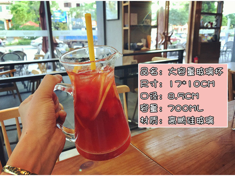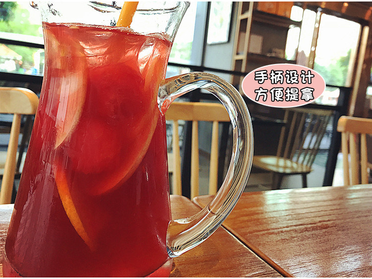 创意大容量透明简约带手柄玻璃水瓶咖啡厅果汁饮料冷饮水果茶杯子