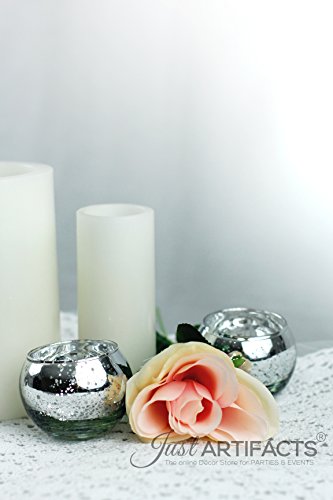 Just Artifacts Round Mercury Glass Votive Candle Holders 2"H Speckled Silver (Set of 12) - Mercury Glass Votive Candle Holders for Weddings and Home Décor