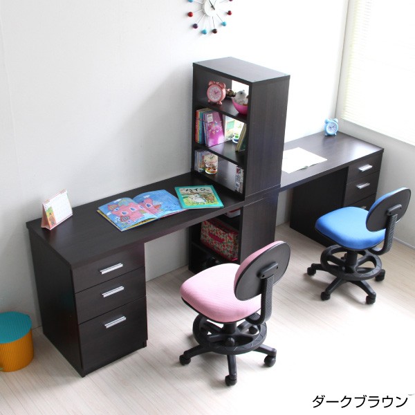 パソコンデスク ツインデスク セット ハイタイプ おしゃれ 収納 木製 書棚付きラック 3段チェスト