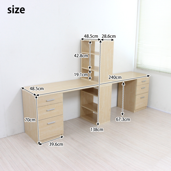 ■ラック、3段チェスト付きのデスクの2台セットモデルです。