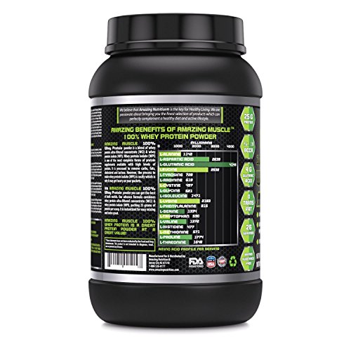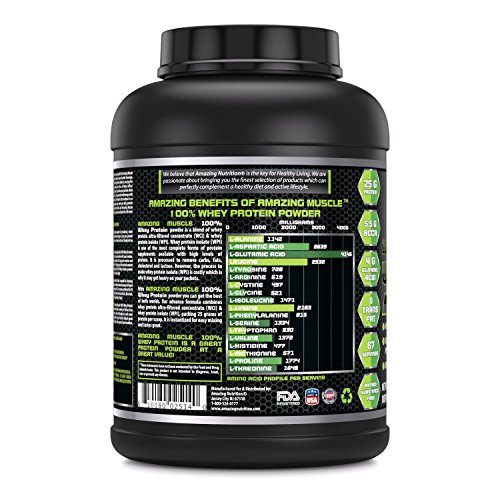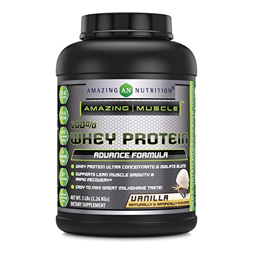 -. Binding : Health and Beauty -. Brand : Amazing Nutrition -. Feature : A HIGH PERFORMANCE WHEY SUPPLEMENT Amazing Muscle 100% Pure Whey Protein Supplement Gives You 25 Grams Of Protein Per Serving. Our Advanced ProP.R.Ietary Formula Combines Whey Protein Isolate (WPI)As A P.R.Imary Ingredient Along With Ultra Filtered Whey Protein Concentrate(WPC) To Give You Optimum Dose Of Whey Protein. / COMPLETE ARRAY OF AMINO-ACIDS Along with an optimum dose of pure whey protein in every serving our advance formula also offers a complete array of Amino acids including 5.5 grams of BCCAs (Branched chain amino acids), 4 grams of glutamic acid, all 8 Essential Amino Acids and more. / THE BEST ADDITION TO YOUR DIET Our designer whey formula is made P.R.Imarily of high quality whey protein isolate (WPI); It's low in carbs, fat, sodium and cholesterol! Plus, it's sugar free, trans fat free and free of banned substances / DELICIOUS & EASY TO MIX You're sure to love our 100% pure whey protein powder vanilla flavor, and our whey protein powder is instantized so it mixes easily in water, milk, juice or your favorite beverage to make a smooth, tasty shake / QUALITY, PURITY AND POTENCY All Amazing Muscle products are proudly made in USA at a GMP certified facility with Guaranteed Purity & Potency. We offer best quality products for the best value. All our products are Third Party Tested. We do not compromise on quality. -. IsAdultProduct : 0 -. Label : Amazing Muscle -. Manufacturer : Amazing Muscle -. MPN : 5157,5140,5164,5195,5188,5171 -. PackageQuantity : 1 -. PartNumber : 5157,5140,5164,5195,5188,5171 -. ProductGroup : Health and Beauty -. ProductTypeName : HEALTH_PERSONAL_CARE -. Publisher : Amazing Muscle -. Studio : Amazing Muscle -. Title : Amazing Muscle 100% Whey Protein Powder *Advanced Formula With Whey Protein Isolate as a P.R.Imary Ingredient along with Ultra Filtered Whey Protein Concentrate