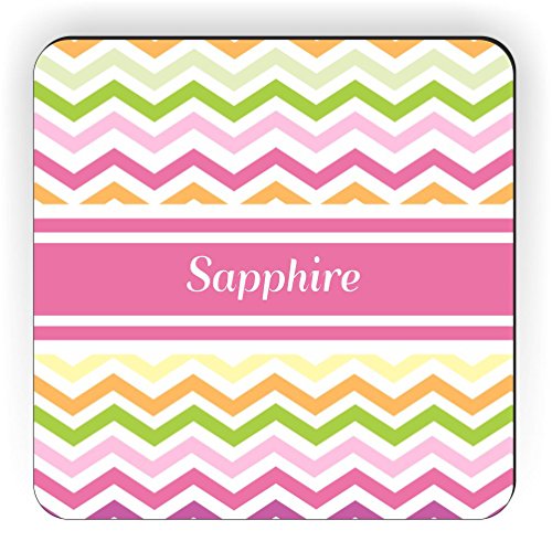 Rikki Knight "Sapphire" Pink Chevron Name Design Square Fridge Magnet