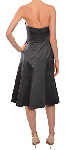 Svelte satin dress with bustier style bodice, strapless sweetheart neckline and fit and flare skirt. Back zipper closure.