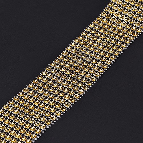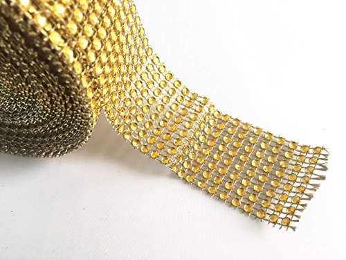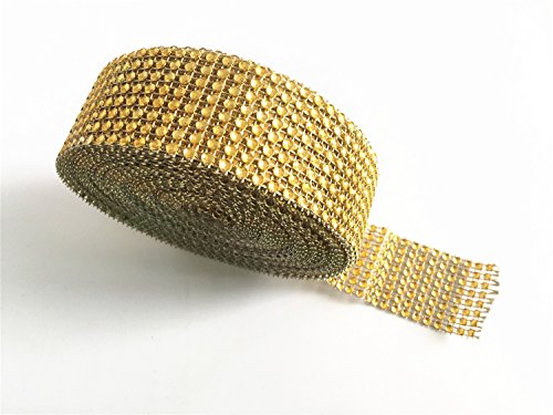 Derker 8 Row Acrylic Bling Rhinestone Diamond Crystal Mesh Wrap Roll Cake Ribbon Banding, Wedding and Party Decoration, 1.5" X 10 Yards (Gold)