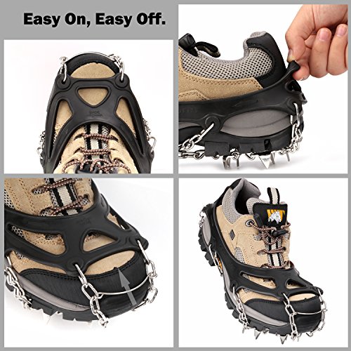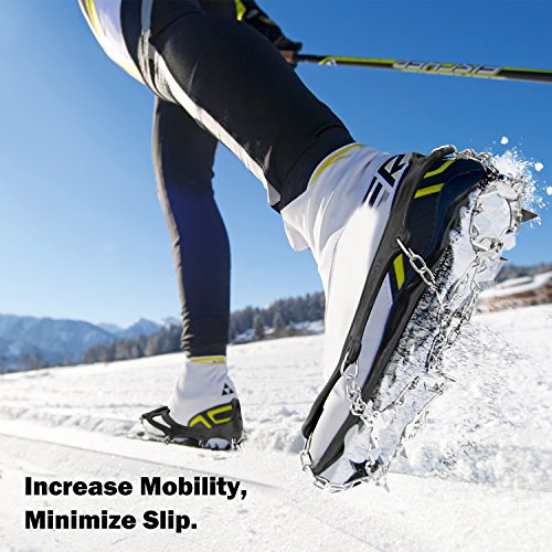 EASY USE - Easy to take on and off. Works with all kinds of footwear: sport shoes, snow shoes, hiking boots and so on.