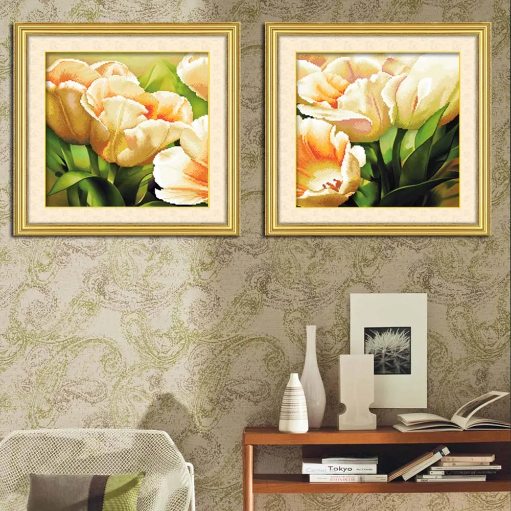 This embroidery kit is of great beauty with beautiful flowers pattern and its colors. It's very easy and fast in the process of finishing this embroidery because it doesn't need to draw grids.