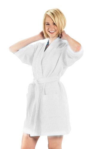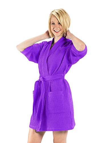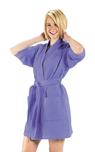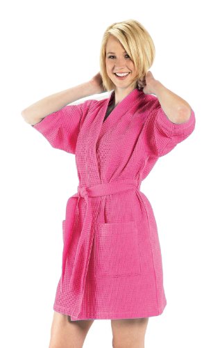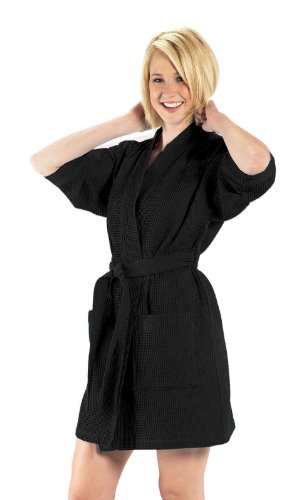 Binding : Apparel Product Description WATER ABSORBENT WAFFLE WOMEN'S KIMONO ROBES *Made of 60 percent cotton and 40 percent polyester lightweight waffle weave fabric. *One Size: Length 36",Shoulder 23", Sleeves 14.5" *XXL Size: Length 37",Shoulder 25", Sleeves 15.5" *3/4 length sleeves, two patch pockets, double belt loops, self-belt. *Available Colors: Aqua, Black,Chocolate, Gray, Hot Pink, Lavender Light Pink, Lime, Pink, Purple and White. *This colored Waffle robe makes a great bridesmaid robe for any wedding party *Wedding Robe, Bridal Robe, Spa Robe, Women's Robe, Kimono Robe for Women, Laides Cover up.