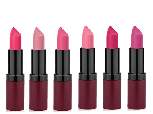 Feature : Set contains 6 tubes of pink-toned Velvet Matte long wear lipstick / Glides on smooth for easy application and deep pigments provide gorgeous color and long wearing coverage lasts for hours. / Formulated with Vitamin E to nourish and moisturize your lips. / Perfect gift for the beauty lover in your life.