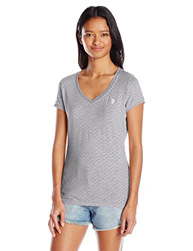 Short sleeve polka dot print lace trimmed v-neck t-shirt