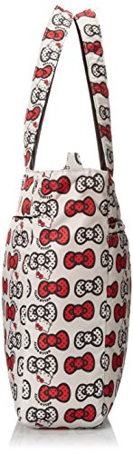 The Ju-Ju-Be Hello Kitty Collection Super Be Zippered Tote Diaper Bag is chic, smart, ultra-light and functional with extra pockets for added versatility. This tote has SUPER powers! It’s SUPER cute! It’s SUPER light! It’s SUPER stuffable! It’s SUPER versatile! Does it have X-Ray vision? No, but its zippered top will help you get through the X-ray machine at the airport faster than a speeding bullet. The Super Be’s inner lining is protected with an Agion natural antimicrobial treatment that inhibits and reduces the growth of odor-causing bacteria, mold and mildew. The outer fabric is treated with Teflon fabric protector, making it easy to repel stains and keep the Super Be clean. In addition to the spacious interior, the Super Be has (7) additional pockets for keeping you ultra-organized and a 12-inch drop strap. The front of the Super Be has (3) extra pockets, (2) of which are tall enough to hide your water bottles, and a center zipper pocket for your smartphone or car keys. The main zippered section is large enough for diapers, wipes, extra clothes, soft toys and other items needed. Inside the bag there are (2) interior mesh pockets and an extra-long attached key clip. The large back pocket is perfect for magazines or your children's books and is designed with a snap closure. The tote features Peek A Bow patterned fabric and silver colored metal hardware. This bag is machine washable and measures 18-inches by 15-inches by 5.5-inches in size. The Ju-Ju-Be Hello Kitty Collection Super Be Zippered Tote Diaper Bag comes with a 90-day limited warranty that protects against manufacturing defects. Founded in 2005, Ju-Ju-Be is a Southern California company that fuses science, style, and attitude to create diaper bags, purses and other accessories that are both fashionable and fun.Feature