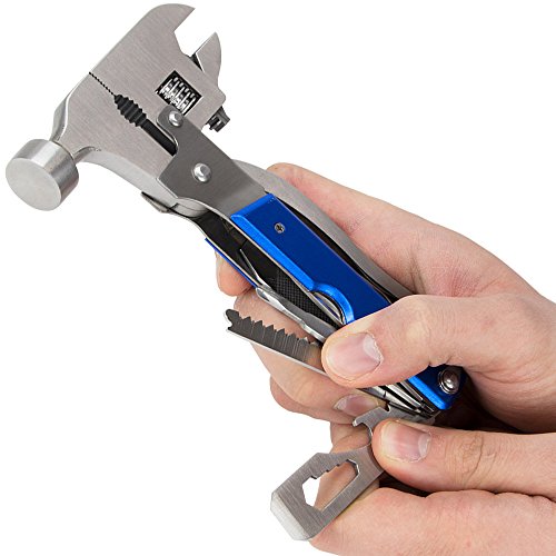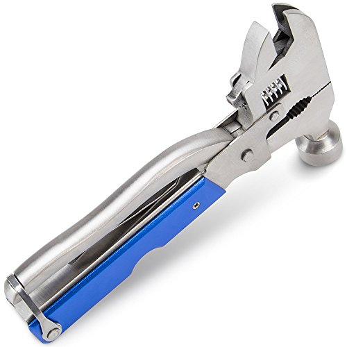 Includes a hammer, wrenches, screwdrivers knives, pliers, bottle opener, and much more