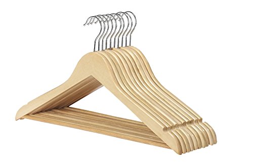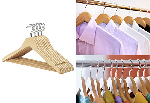 -. Binding : Kitchen -. Brand : Decor Hut -. Color : natural wood -. EAN : 0636134932711 -. Feature : Snag free design is a great way to keep closet organized Sturdy Polished chrome swivel hook, strong and durable enough to hold all kinds of jackets & suit / Set of 10 / Natural beige wooden hangers, high quality! / Great way to keep all suits in original fit wont mishape your clothes -. IsAutographed : 0 -. Label : Decor Hut -. Manufacturer : Decor Hut -. Model : DH001-46 -. MPN : DH001-46 -. PackageQuantity : 10 -. PartNumber : DH001-46 -. ProductGroup : Home -. ProductTypeName : HOME -. Publisher : Decor Hut -. Studio : Decor Hut -. Title : Decor Hut Wooden Suit Hangers with Bar to Keep Pants, Swivel Hook, Pack of 10 -. UPC : 636134932711