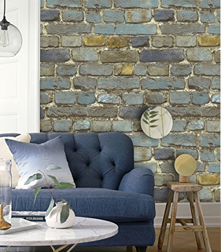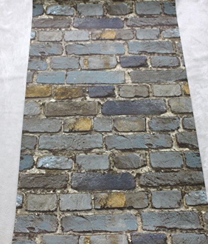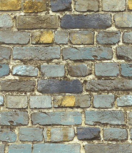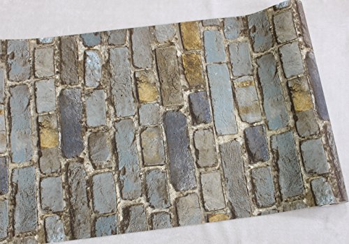 HaokHome 7704 Brick Wallpaper Rolls Blue/Yellow/Brown/Black Distressed Murals Home Kitchen Bathroom Decoration 20.8" x 32.8ft