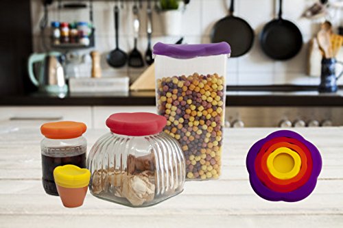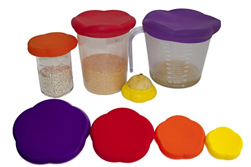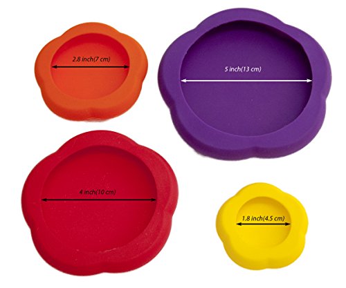 Kitchen Food Hugger Saver Silicone Reusable Stretchable 4 Pack Coloring Food Cover - Fruits,Cans, Baby Food, Cat Food, Dog Food - By Depot Globe