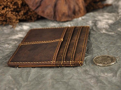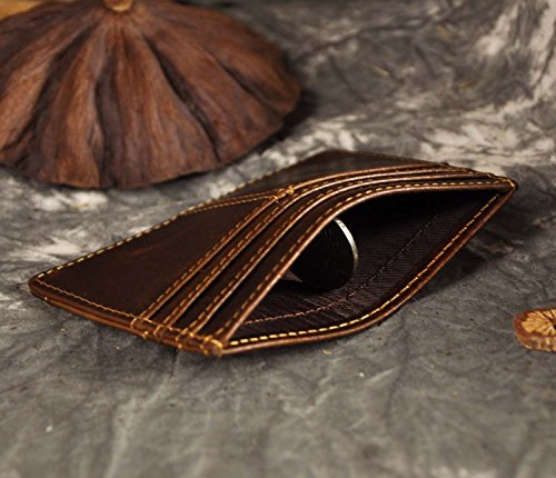 -. Feature : Product NO: W1078 / Material: Genuine leather / Size: 11 x 8.3 x 0.4 cm (4.3 x 3.26 x 0.16 inch) Weight about: 0.04kg / Structure: It has 6 card slots, one middle open pouch for some folded case or card. Minimal andompact Design, really a slim wallet makes it easy to slide into your front or Back pocket. / Please be noted: This is genuine leather products, it usually come with the leather smell and it'll fade out as time going. It's also easy to get scratches on the surface, please understand, thanks.
