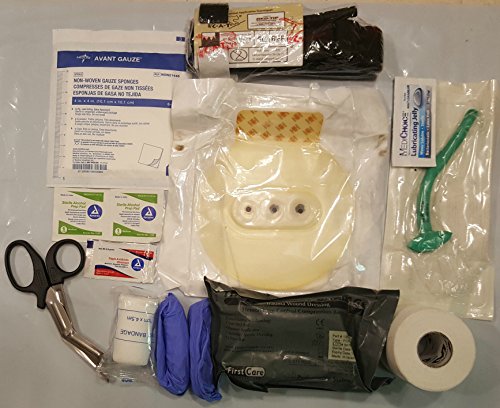 -. Feature : NAR Combat tourniquet, Chest Wound Seal, Trauma Shears / Nasopharyngeal airway tube and lubricating jelly / Israeli compression bandage, non woven Sponge Gauze, rolled gauze. / Assorted bandaids, Triple antibiotic ointment, scalpel blade / two sets of nitrile exam gloves, cloth tape roll, alcohol pads