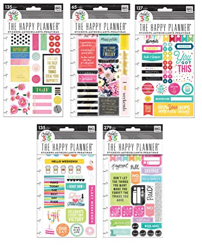 Create 365 Happy Planner Stickers Bundle - Happy Brights, TGIF, Make It Happen, Get Paid and Happy Life - 5 Items