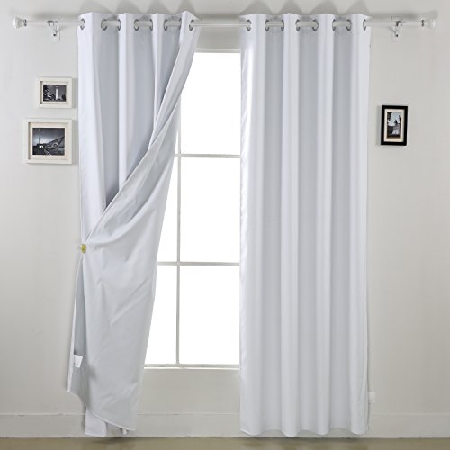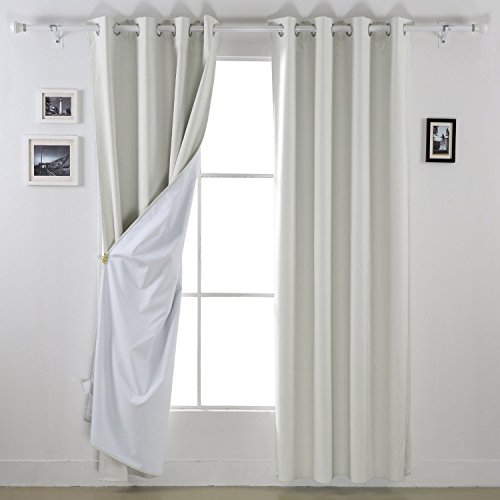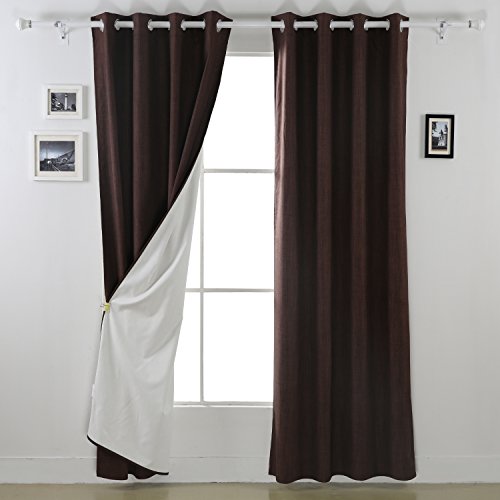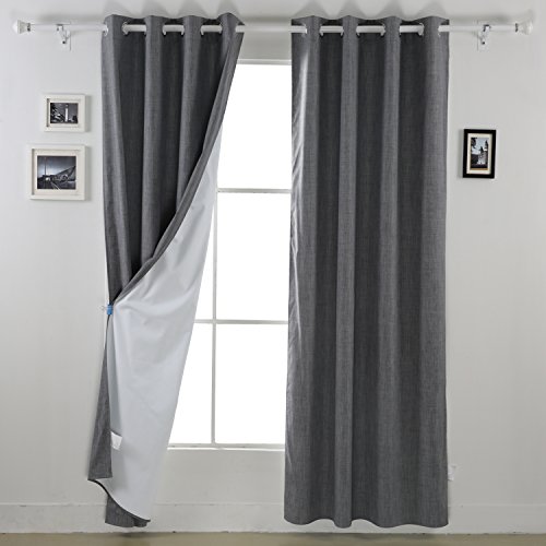 This heavy thick blackout curtains have one blackout side and a triple-pass thermal coating back layer side which makes it an unique multifunction curtain with blackout properties, sunlight reflection/blocking and thermal insulation function.