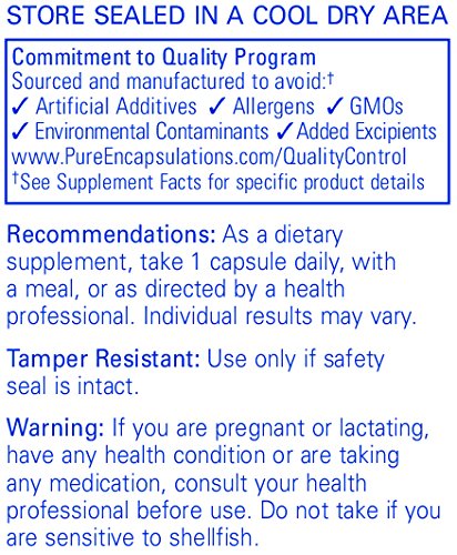 DOSAGE: Pure Encapsulations recommends 1 capsule daily, with a meal, or as directed by a health professional. This product contains shellfish (crab, shrimp).