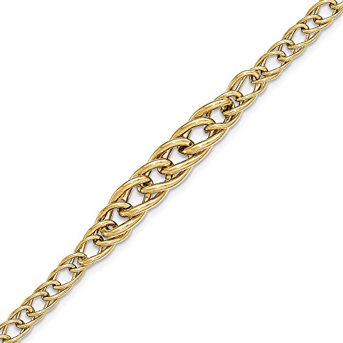 -. Title : 14k Gold Polished and Textured Link Bracelet with Lobster Clasp