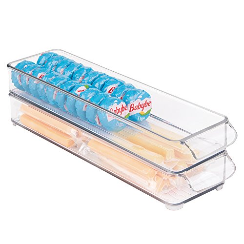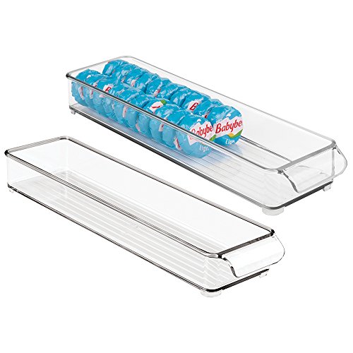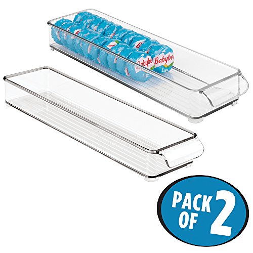 mDesign Refrigerator, Freezer, Pantry Cabinet Organizer Tray for Kitchen Storage - Pack of 2, Clear