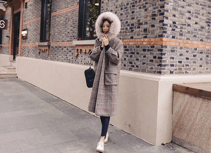ゆったりしたデザインなので厚着をしても着膨れせず、襟元のファーはボリューム感たっぷりで、暖かく華やかな雰囲気になります。