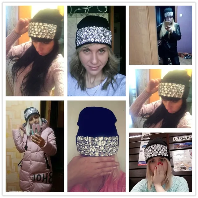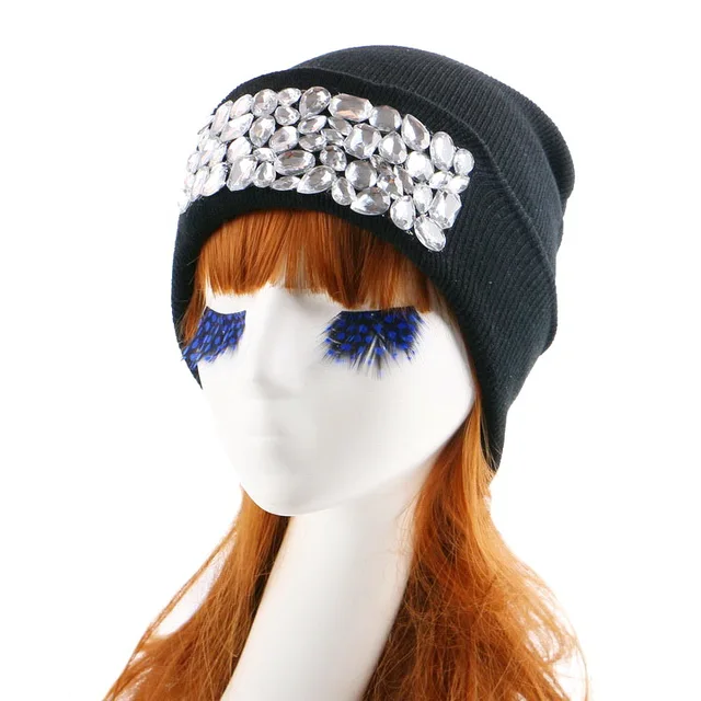 상품 내용 여성 여자 럭셔리 브랜드 겨울 모자 모자 비니 사용자 정의 디자인 클리어 비드 석 아름다움 여자 남성 gorros 캐주얼 skullies