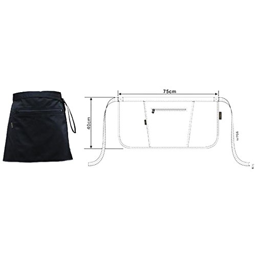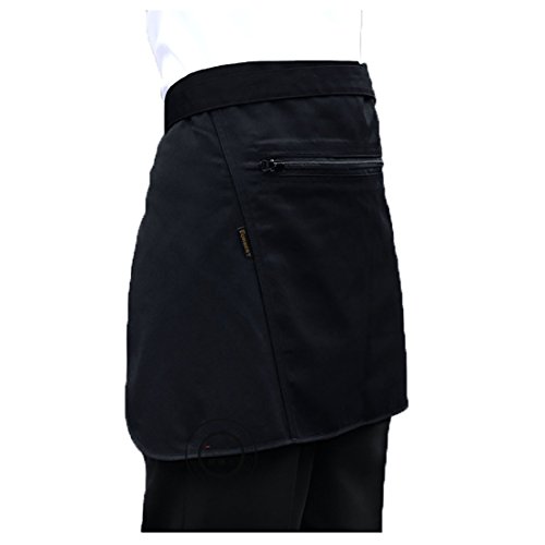 LissomPlume Kitchen Half Waist Apron Work Money Holder Apron with Zipper Pocket 75 x 40cm Black