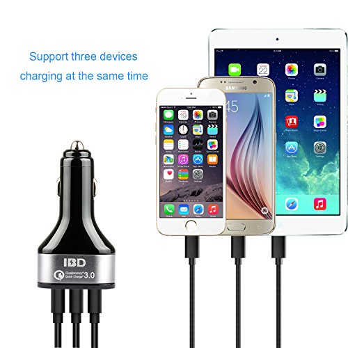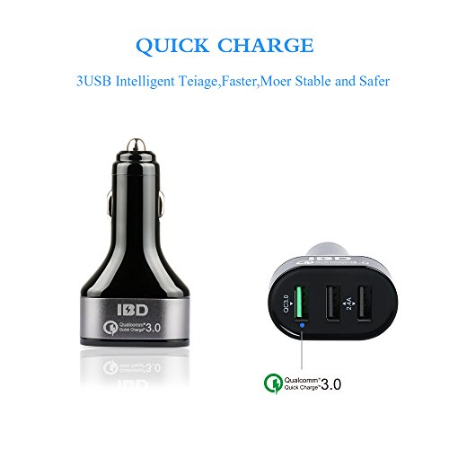 IBD Qualcomm Certificated Quick Charge 3.0 Car Charger,42w 3 port usb car charger with Smart Charging Port for iPhone 7 / 6s / Plus, iPad / Air 2 / mini, Galaxy S7 / S6 /, Note 5 / 4, LG, HTC and More