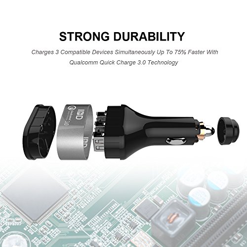 - Quick Charge 3.0 Technology:Reduces Charge Time, charges compatible devices up to80% faster than a normal charger with total 42W sufficient power,3 port usb car charger Convenient charging