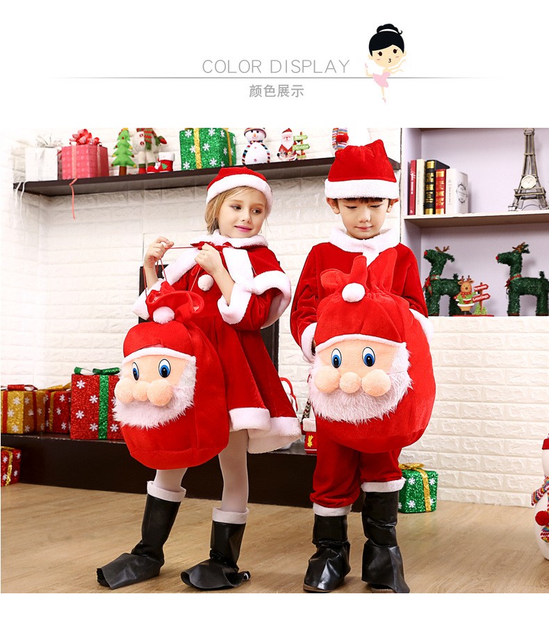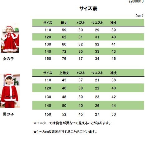 【製品仕様】■商品名サンタ服 キッズ ワンピース 男の子 女の子 クリスマス 仮装■セット内容男の子 トップス+ボトムス+ベルト+帽子女の子 ワンピース+ケープ+帽子※サンタ袋は別売りです。■サイズ110 120 130 140 150■素材 ベロア■色#1男の子 #2女の子【検索キーワード】長袖ワンピース クリスマス サンタクロース 女の子 女の子 韓国子供服