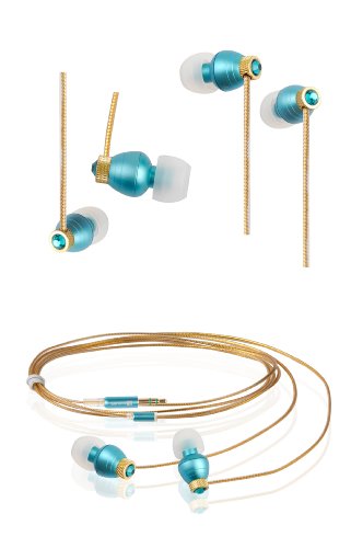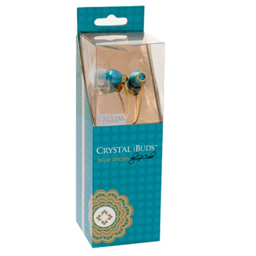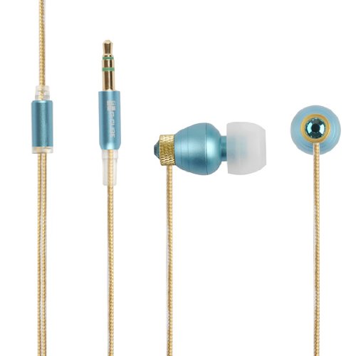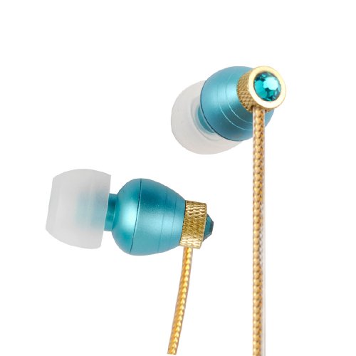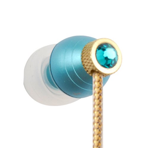 Swarvoski Crystal iBuds by G-Cube IB990T Blue Zircon color earbud Fully Faceted Xilion - Cut Swarovski Element, Enhanced Bass driven sound 10MM speaker, with Green Oxygen free Copper and Tangle free cable IB-990T