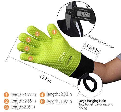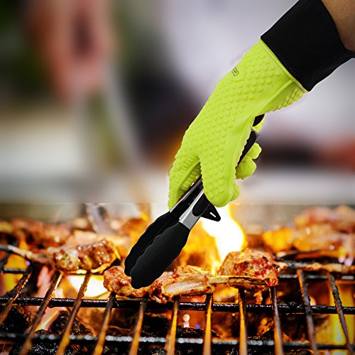 - DUAL-LAYER DESIGN: This BBQ gloves is designed with an outer silicone glove and inner heat-resistant cotton layer, comfortable and moisture wicking, maximize your heat protection from grill and oven temperatures.
