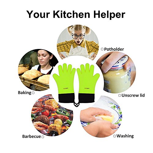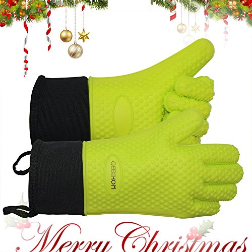 GEEKHOM Grilling Gloves, Heat Resistant Gloves BBQ Kitchen Silicone Oven Mitts, Long Waterproof Non-slip Potholder for Barbecue, Cooking, Baking (Green)