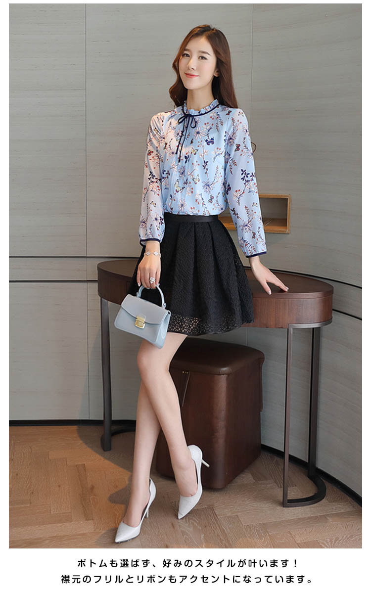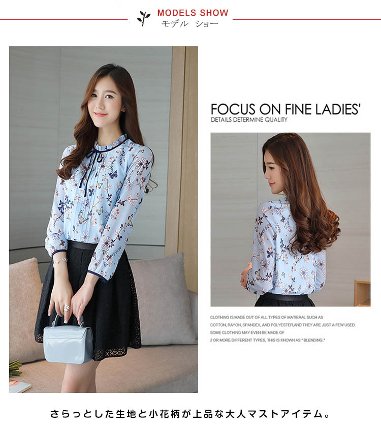 | これ一枚でぐっとトレンド感を引き寄せてくれる花柄ブラウス。さらっとした生地と小花柄が上品な大人マストアイテム。ボトムも選ばず、好みのスタイルが叶います!襟元のフリルとリボンもアクセントになっています。トップスインもすっきり着れるこれからの季節に最適の薄手長袖シャツ。 | |