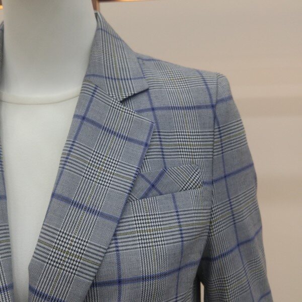 포멀한 디자인에 선명한 블루체크무늬가 산뜻한 투버튼 기본자켓입니다. 심플한 데일리룩에 포인트를 줄 수 있는 핫 한 아이템입니다.