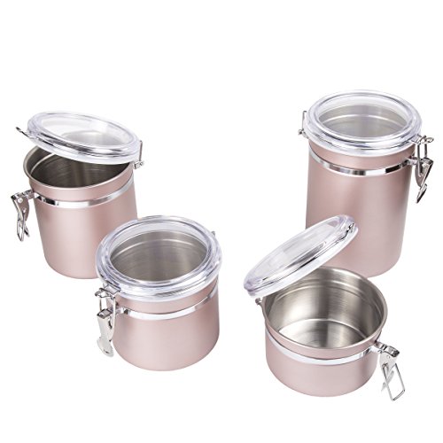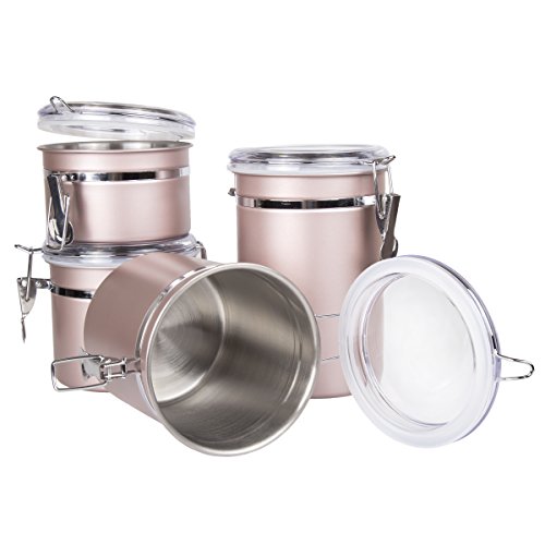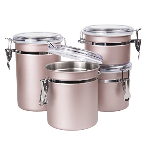 Creative Home 50259 4-Piece Stainless Steel Canister, Container Set with Air Tight Lid, and Locking Clamp, Rose Gold