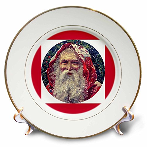 3dRose cp_35420_1 Santa Face on Red Background-Porcelain Plate, 8-Inch